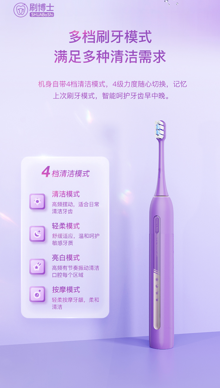刷牙模式:一鍵4檔模式