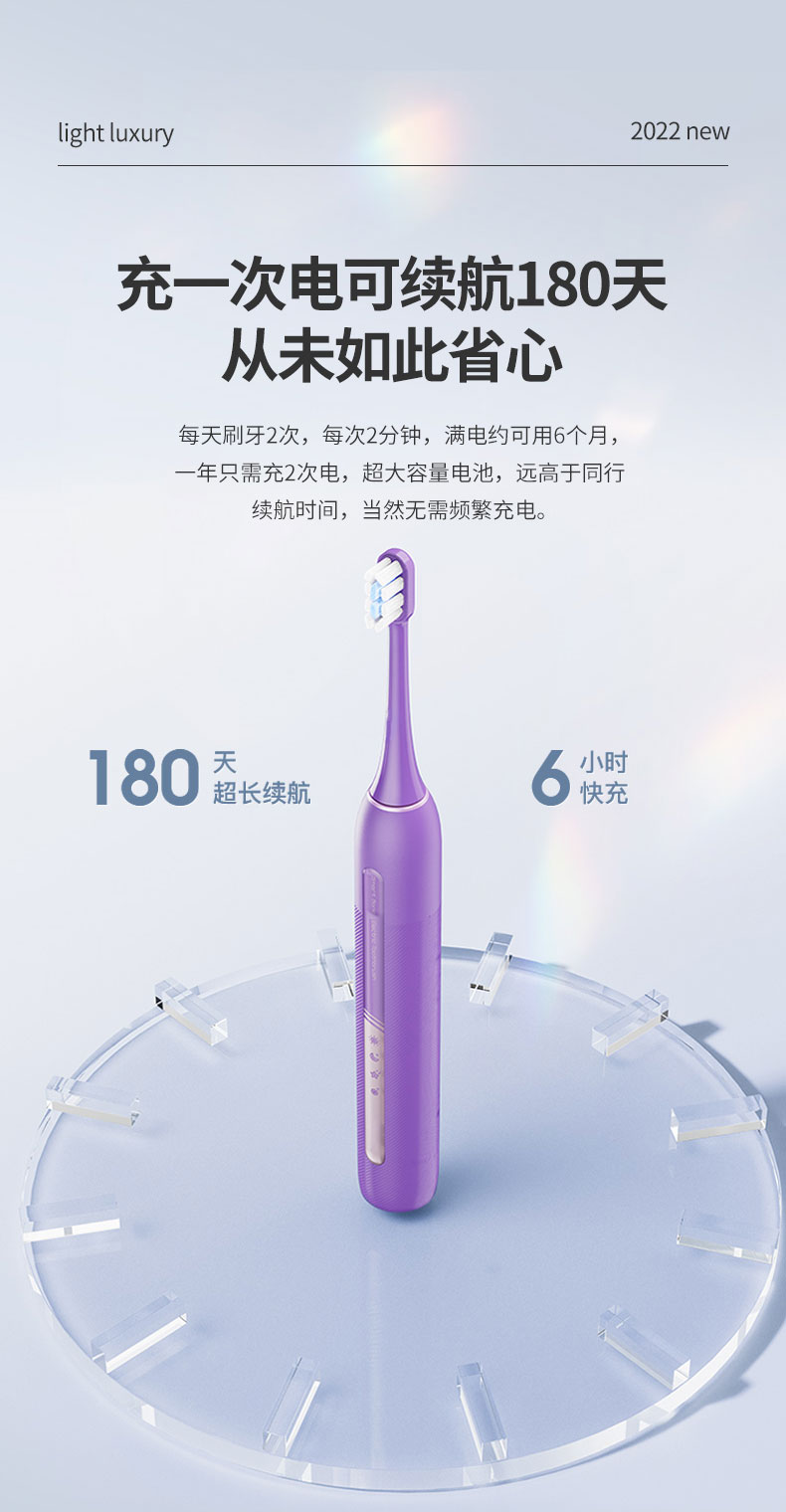 牙刷類型:磁懸浮聲波振動